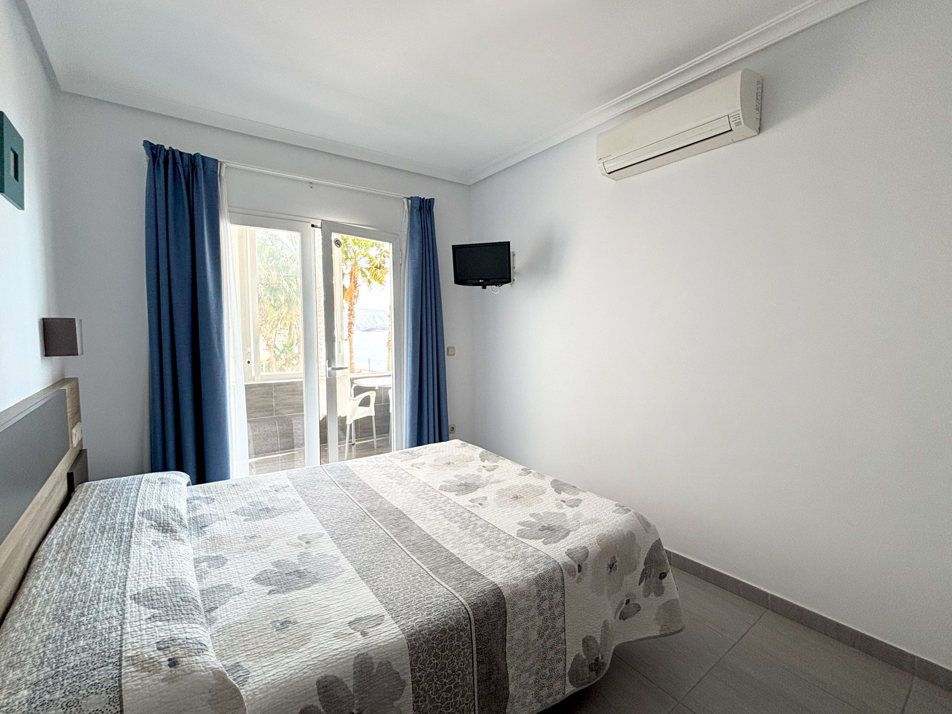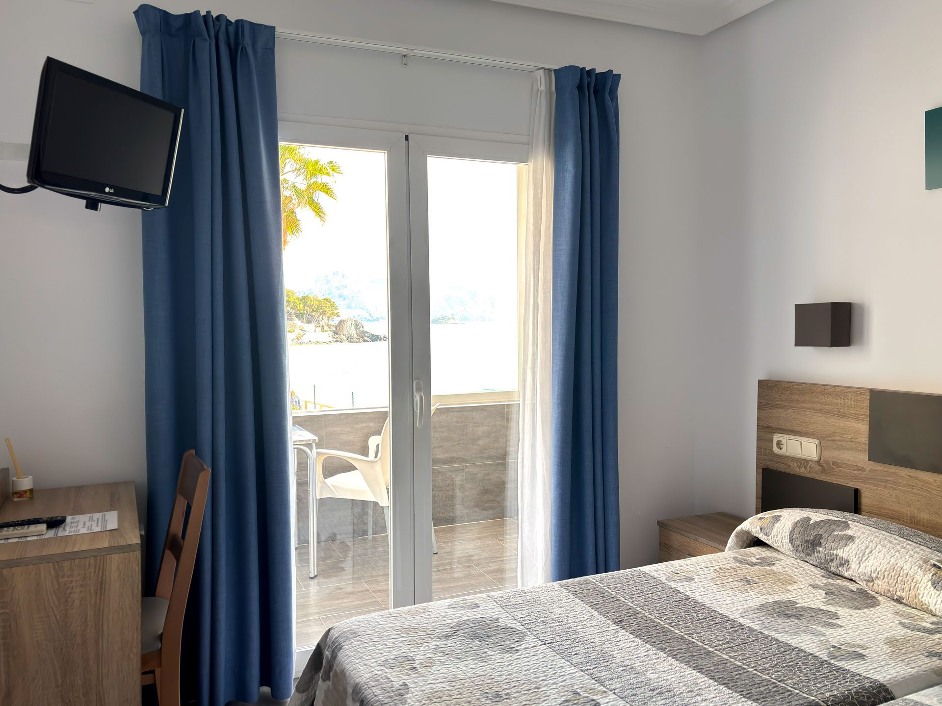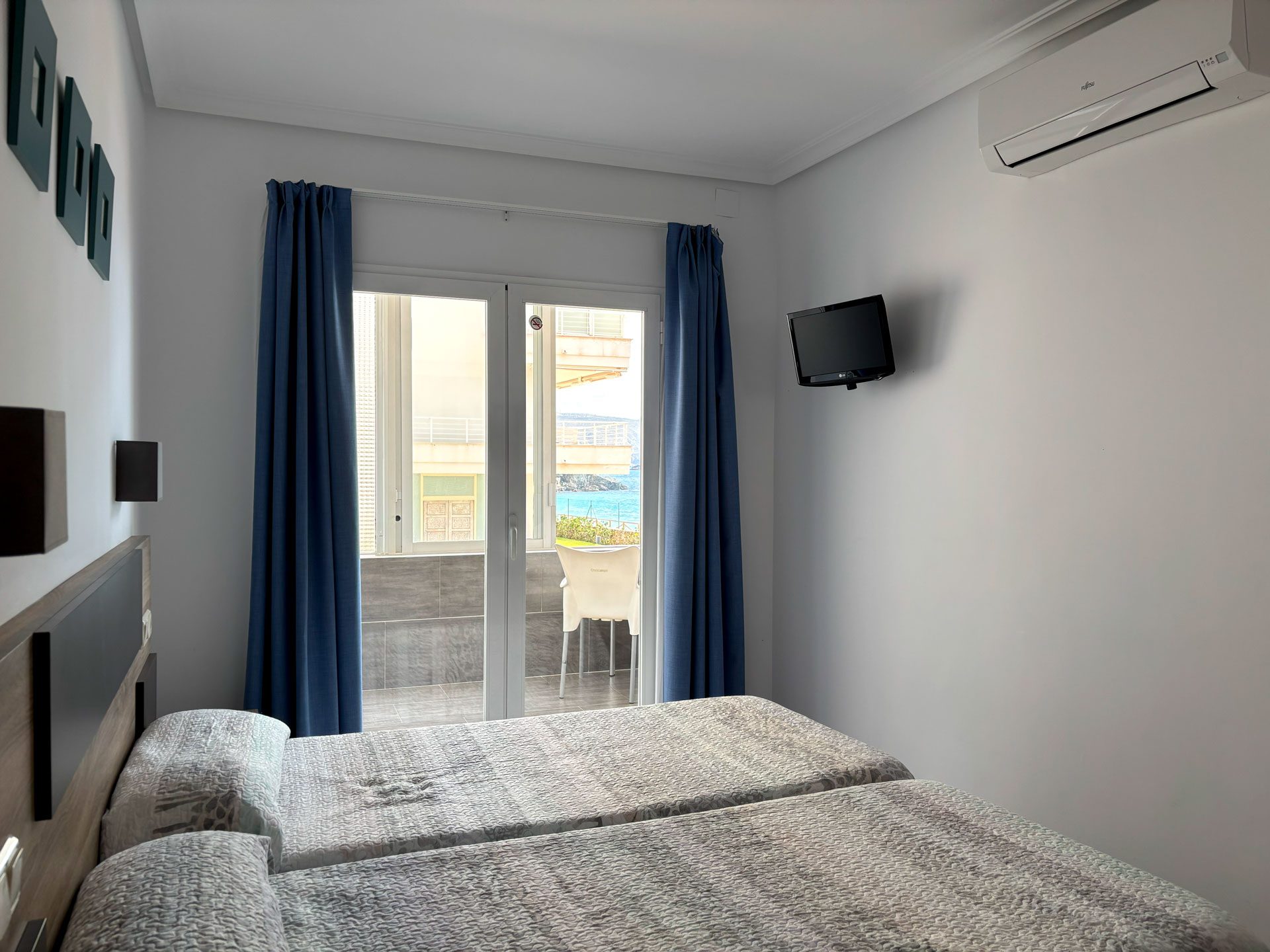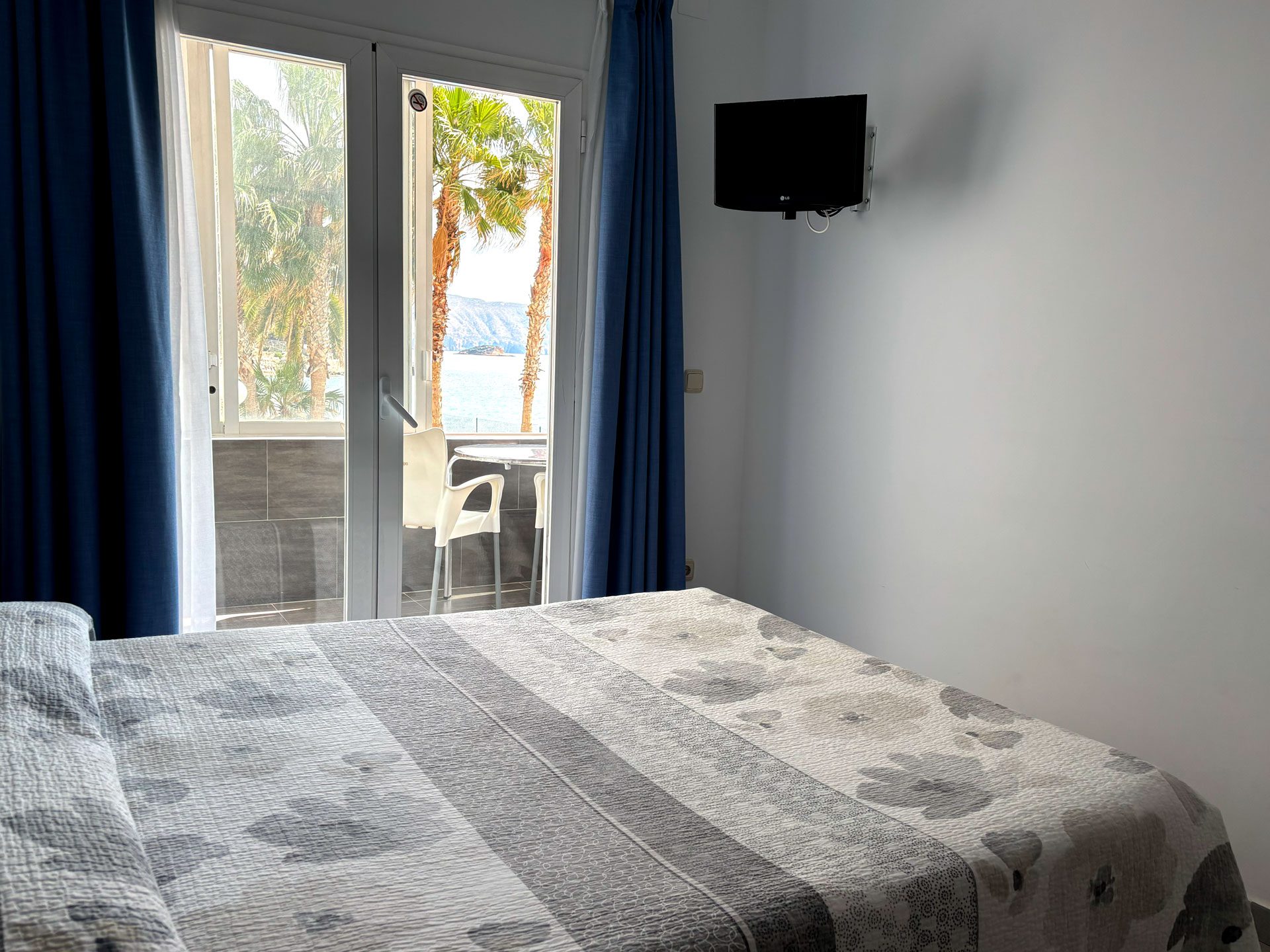 Disponemos de 17 habitaciones, diseñadas para tu confort y descanso. 15 de ellas son dobles, con la opción de convertirse en triples, y cuentan con vistas laterales al mar. Además, ofrecemos 2 habitaciones familiares con vistas frontales al Mediterráneo, perfectas para disfrutar del paisaje.