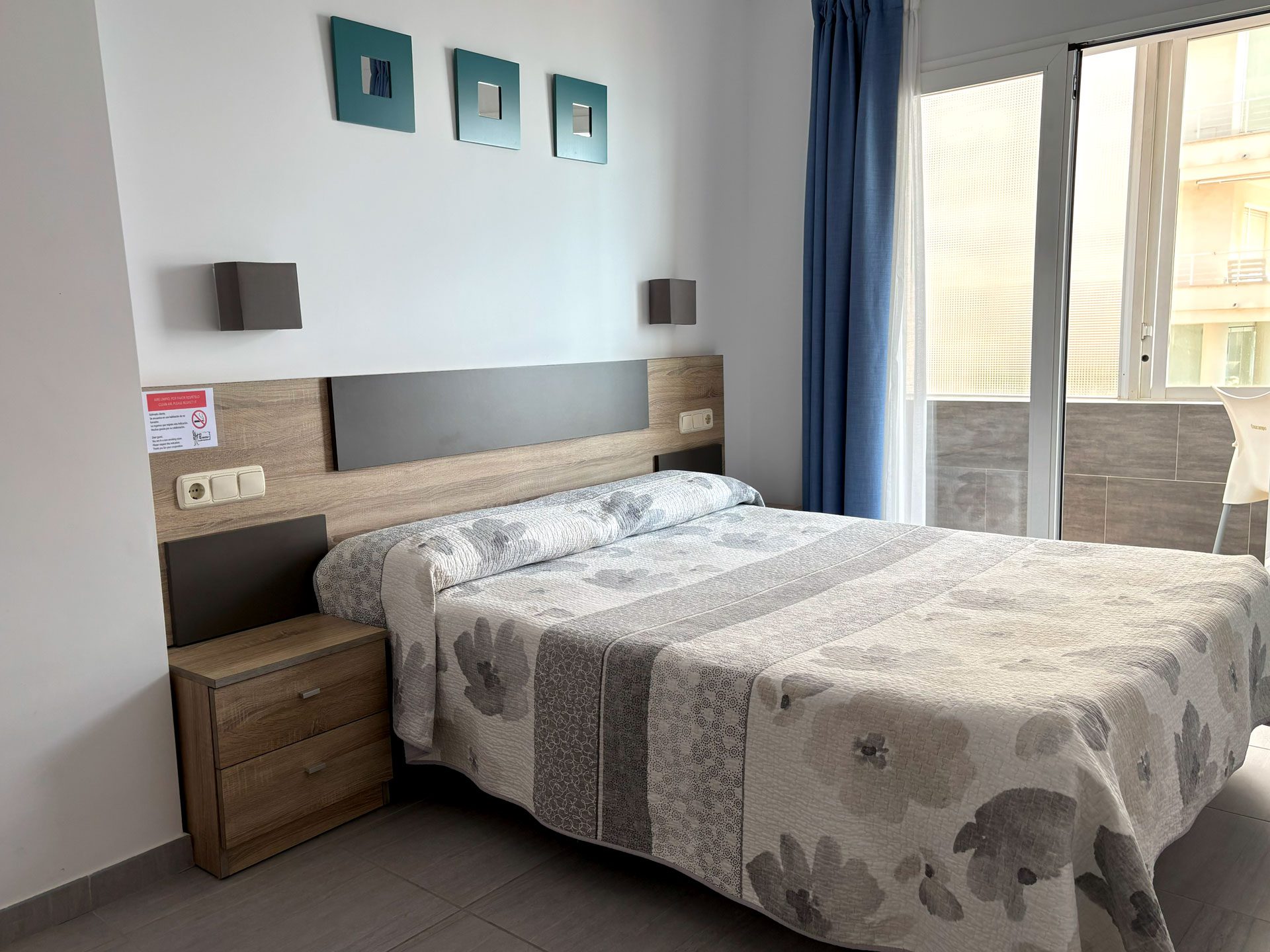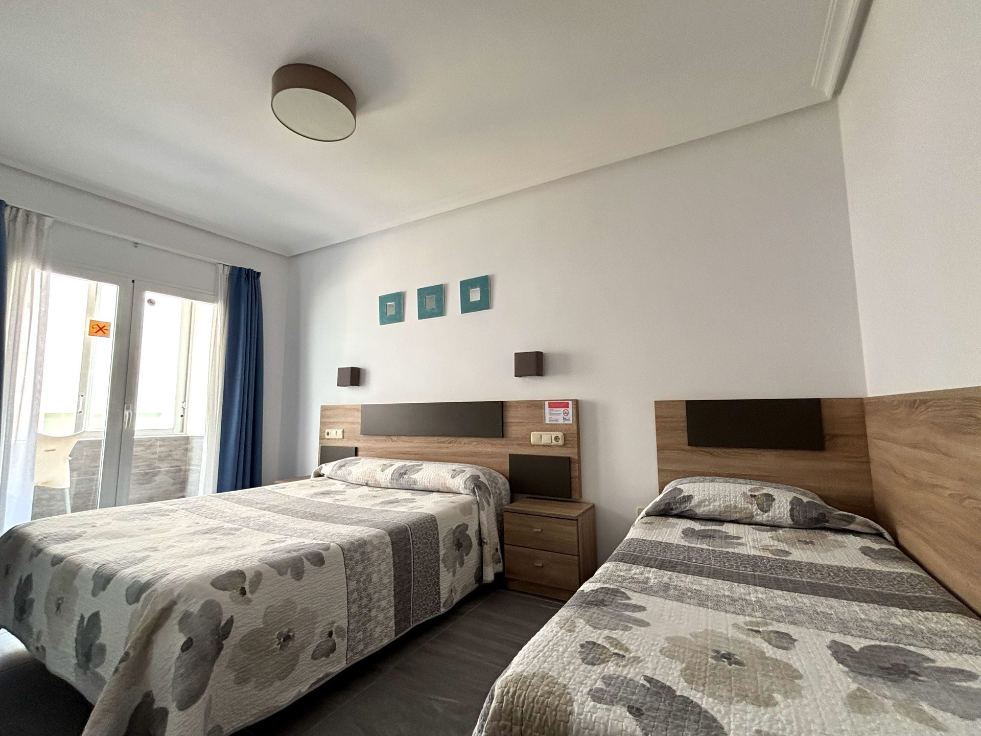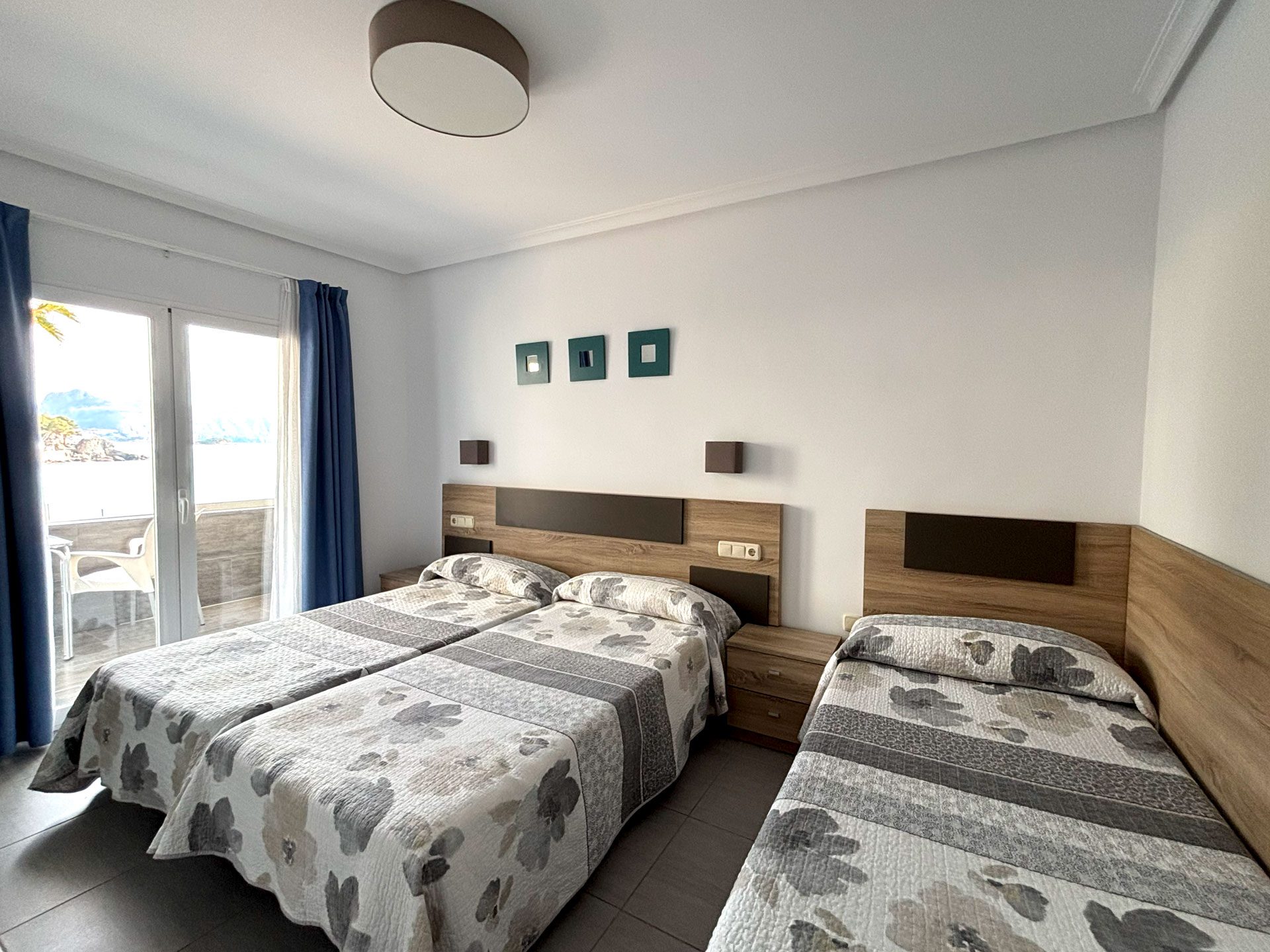 Disponemos de 17 habitaciones, diseñadas para tu confort y descanso. 15 de ellas son dobles, con la opción de convertirse en triples, y cuentan con vistas laterales al mar. Además, ofrecemos 2 habitaciones familiares con vistas frontales al Mediterráneo, perfectas para disfrutar del paisaje.