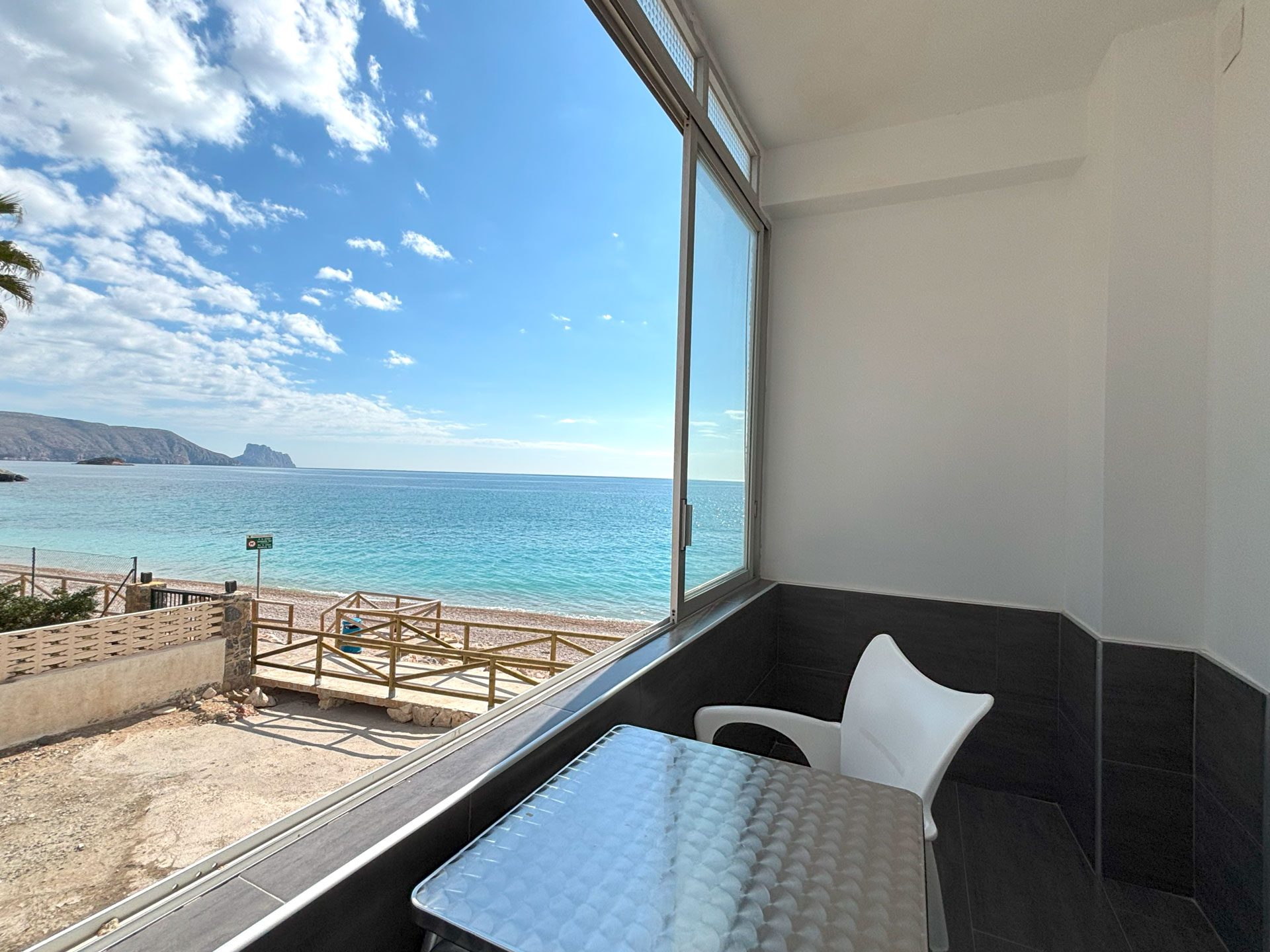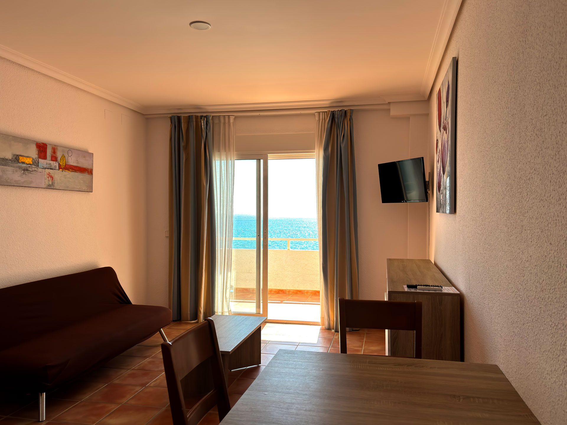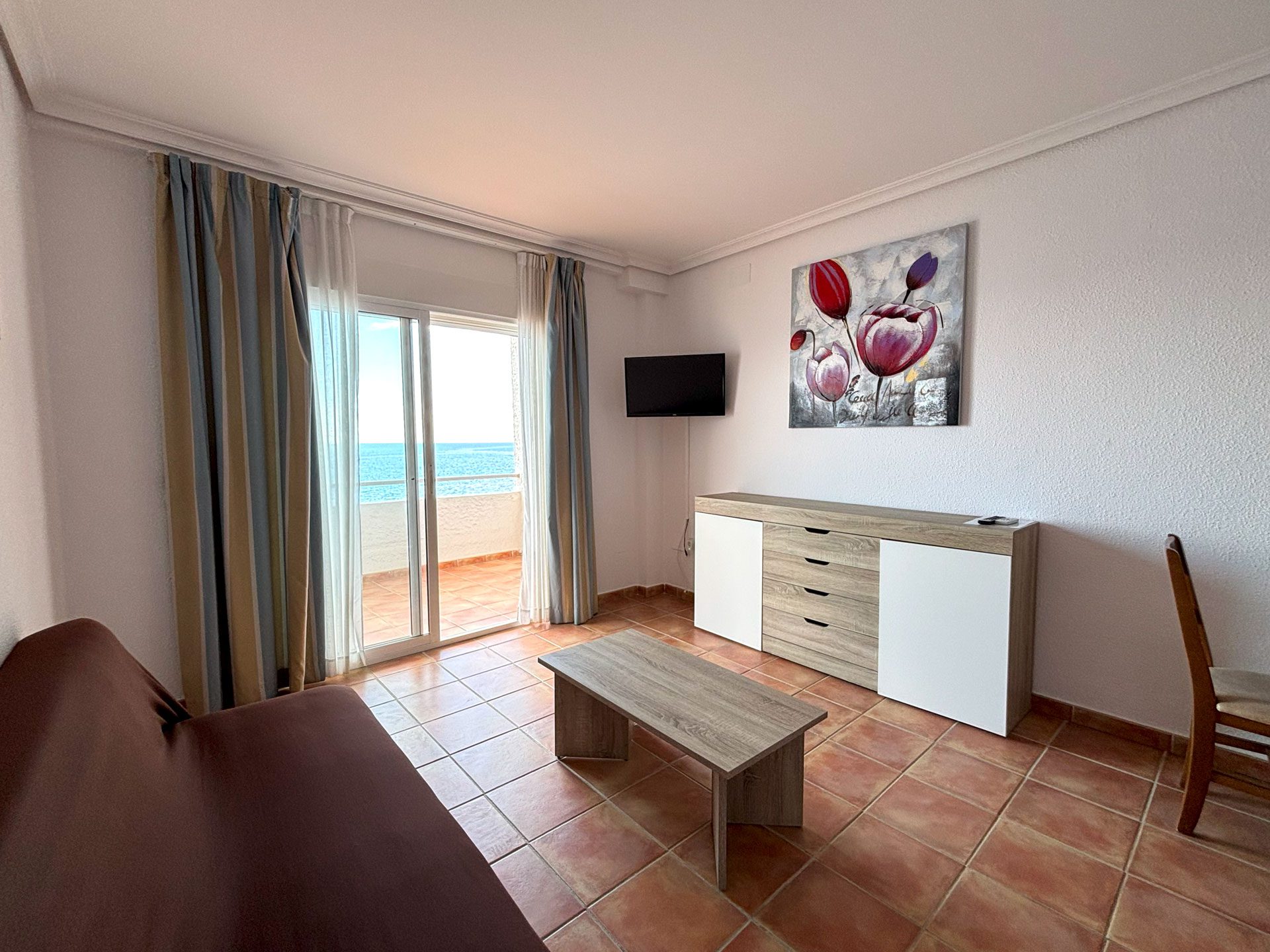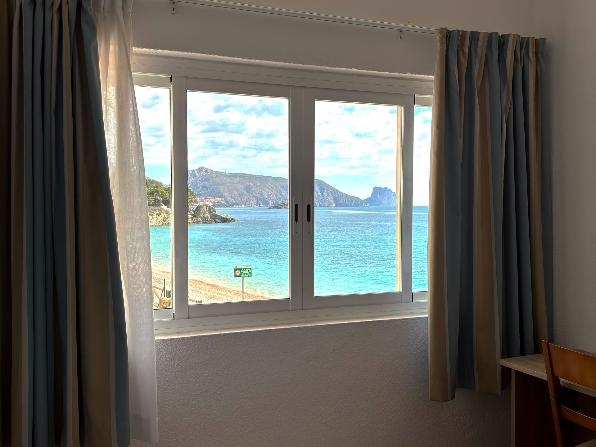 Disponemos de 17 habitaciones, diseñadas para tu confort y descanso. 15 de ellas son dobles, con la opción de convertirse en triples, y cuentan con vistas laterales al mar. Además, ofrecemos 2 habitaciones familiares con vistas frontales al Mediterráneo, perfectas para disfrutar del paisaje.