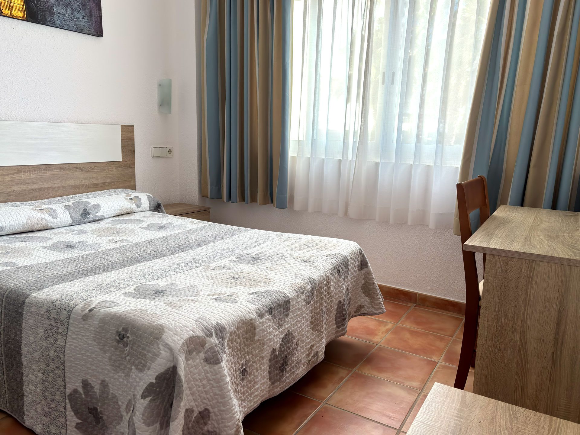 Todas nuestras habitaciones de nuestro hostal en Altea, están equipadas con baño completo (ducha o bañera), amplia terraza, aire acondicionado con bomba de calor, y televisión con canales en español, inglés, alemán, austriaco, estadounidense, ruso, rumano, francés, entre otros. También cuentan con espaciosos armarios y acabados de alta calidad.
